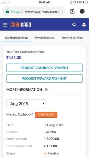 4) Your CashKaro cashback Rs.126 + sign up bonus Rs.25 will be tracked within24 hours of your booking.