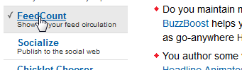 You will get a menu with many options in the left side of this page. Click on Feed Count.