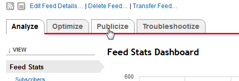 Click on the feed link under my feed section, you will get four options Analyze Optimize Publicize And Troubleshootize. Now Click on the Publicize option.