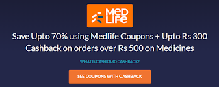 Hello readers, today here is a great deal for you from CashKaro and Medlife. Get 70% discount + Up to Rs 300 cashback from Medlife when you shop with CashKaro.