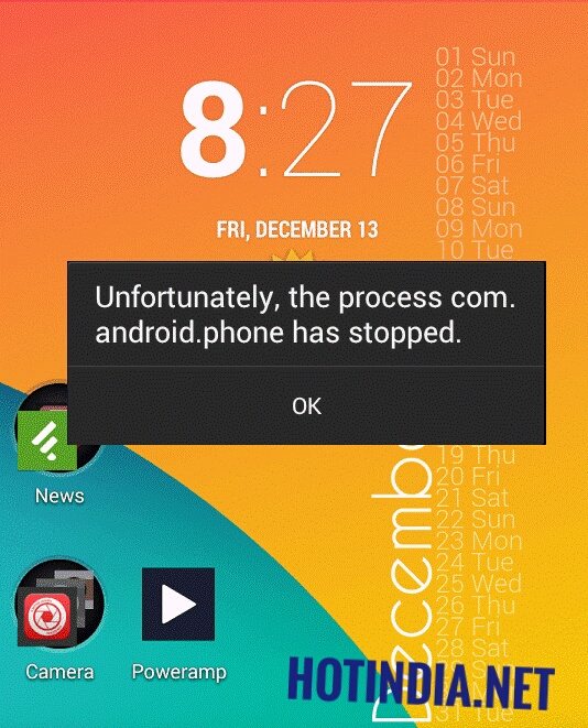 Hope you have solved the problem Unfortunately the process com.android.phone has stopped.